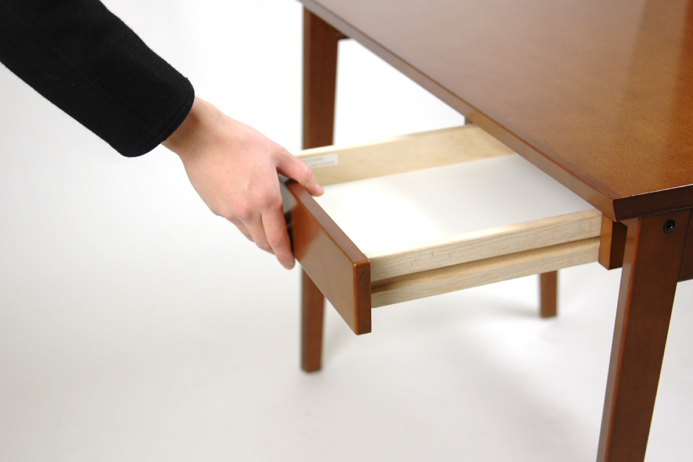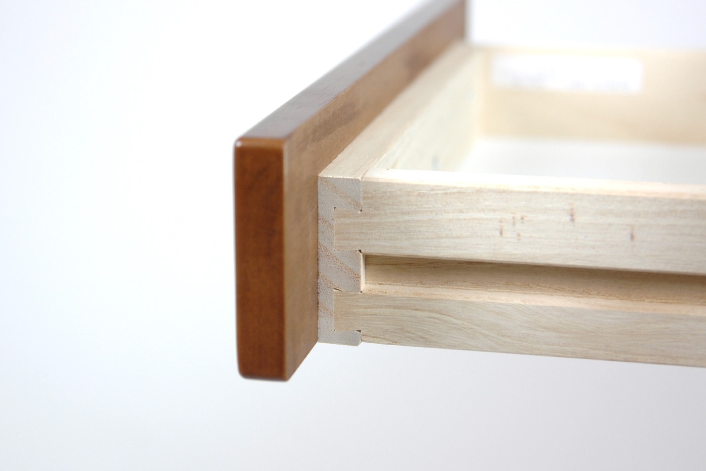 引き出しの接合部。引き出しはアリ組接合という昔ながらの手法で組み立てられており、耐久性も抜群です。