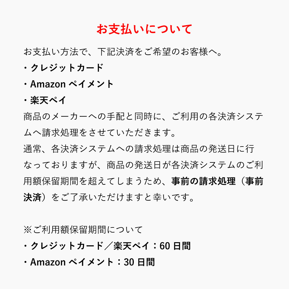 お支払い方法によって事前にご了承いただく内容がございます。(詳細はこちら)