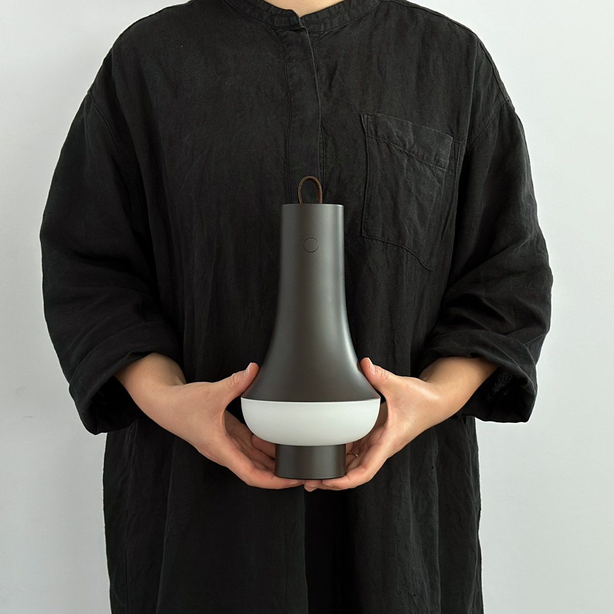 Tomoshiポータブルの先端には、伸縮式のレザーストラップが付いていますので、持ち運びの際やフックなどに引っ掛ける時も重宝します。ストラップは手を離すと自動で中に戻ります。
