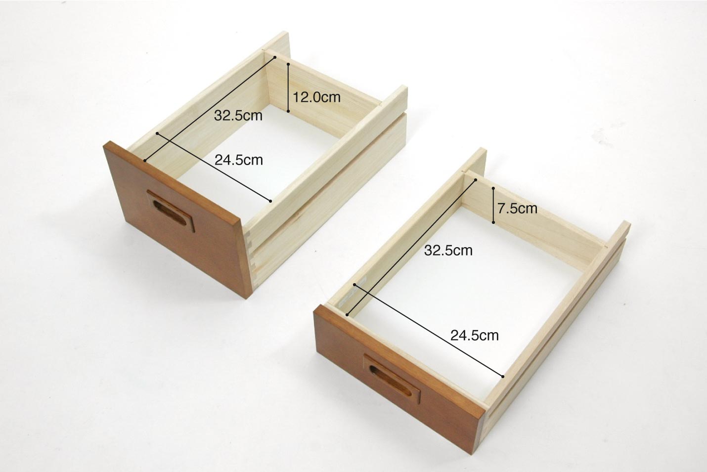 引き出し内寸。右:1段目、左:2,3段目