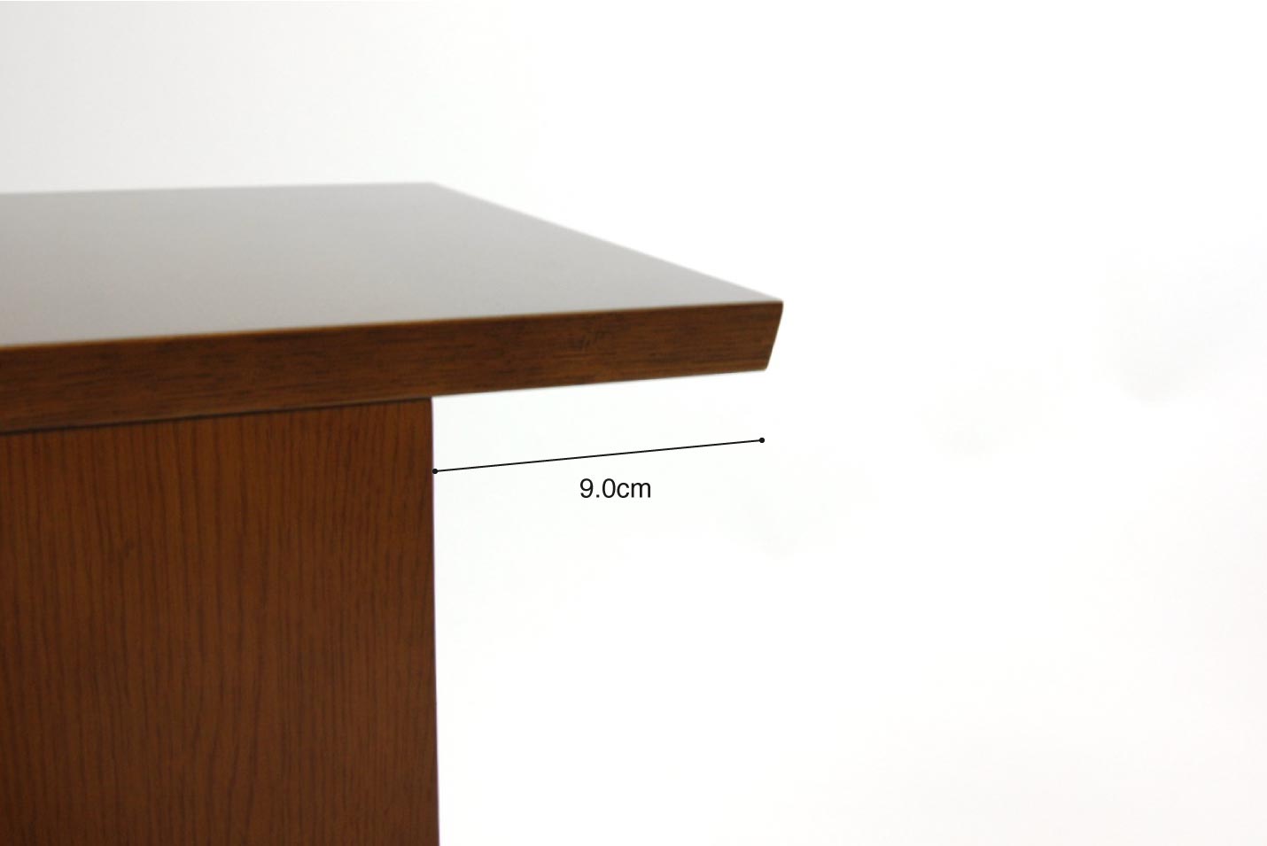 天板のエッジ部分。デスクと同じく天板の端に若干の角度がつけられたデザイン。このちょっとしたこだわりがすごく良いんです。