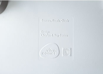 2010年までは日本でもヴィトラ社が製造したイームズチェアが流通していました。2010年末からはハーマンミラー社製に変更となり、これに伴いシェル裏面のエンボスロゴが「Vitra」から「HermanMiller」へとなりました。いずれもEames Office公認の正規品となります。