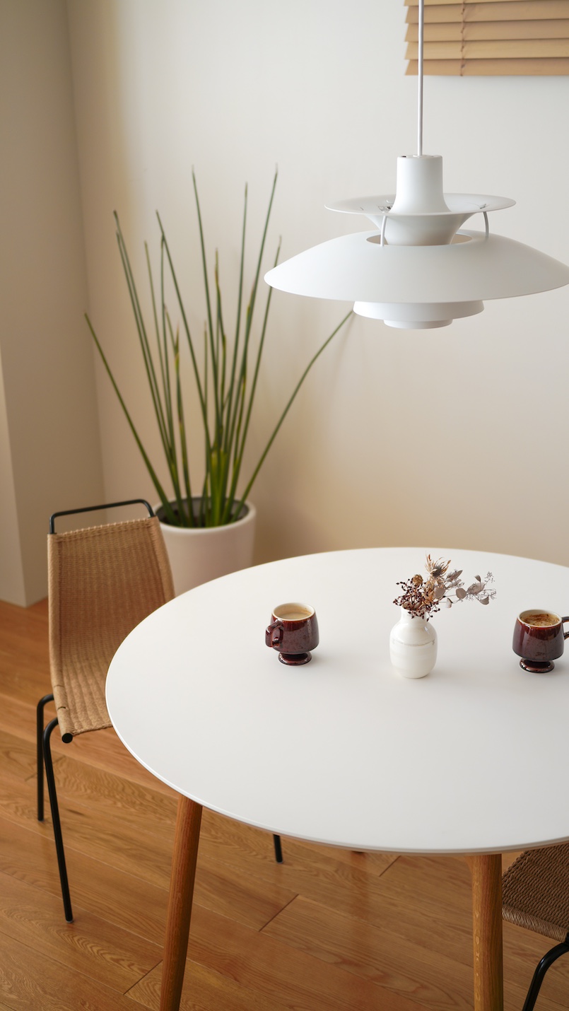 夕方の黄昏時。外がちょっと薄暗くなってきたかな?と思う時間帯が、PH5のゴールデンタイム。この長いようで短い時間はカーテンを閉め切らずに、黄昏の空とPH5が照らすダイニングのコントラストを楽しみましょう。