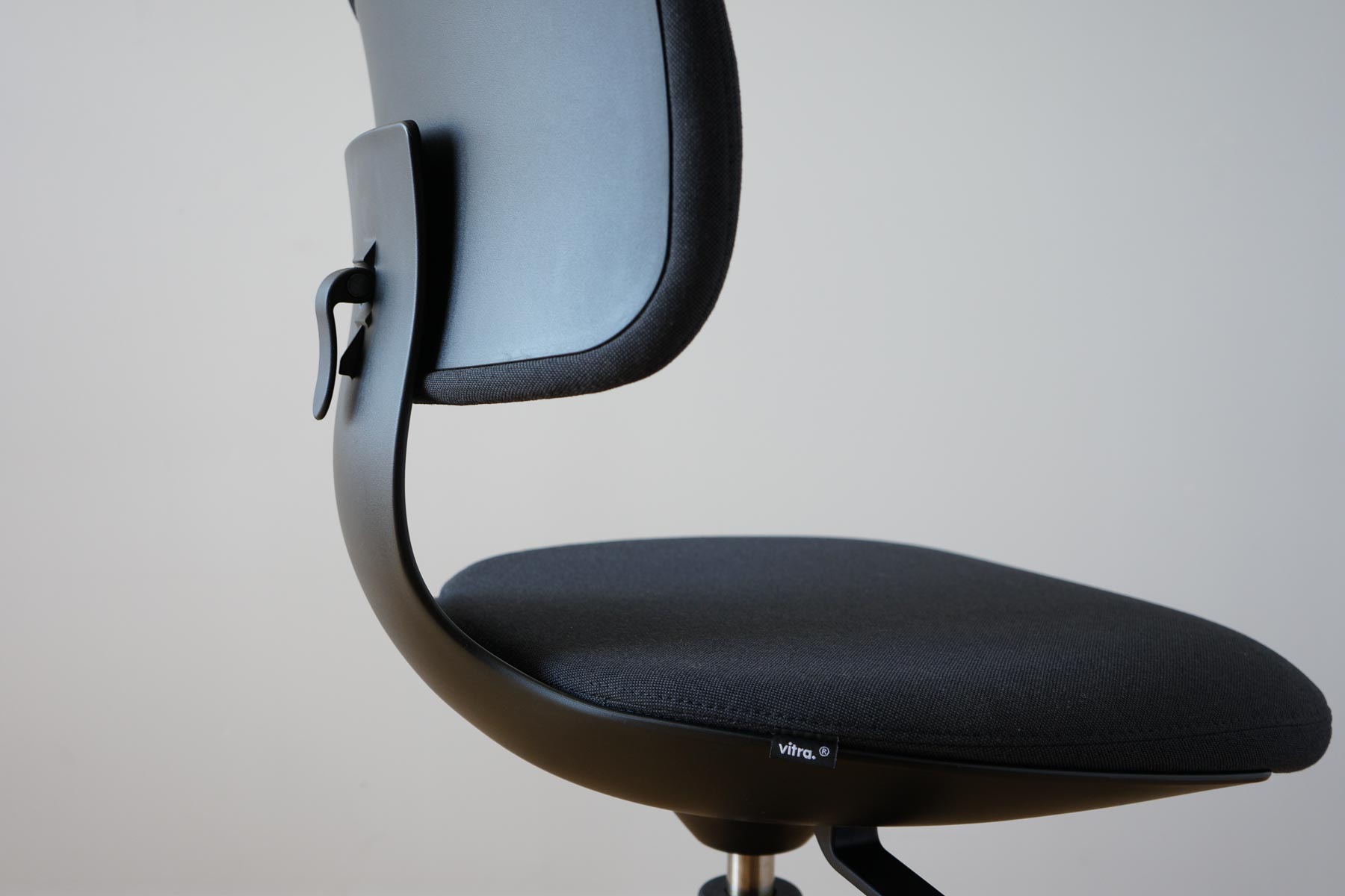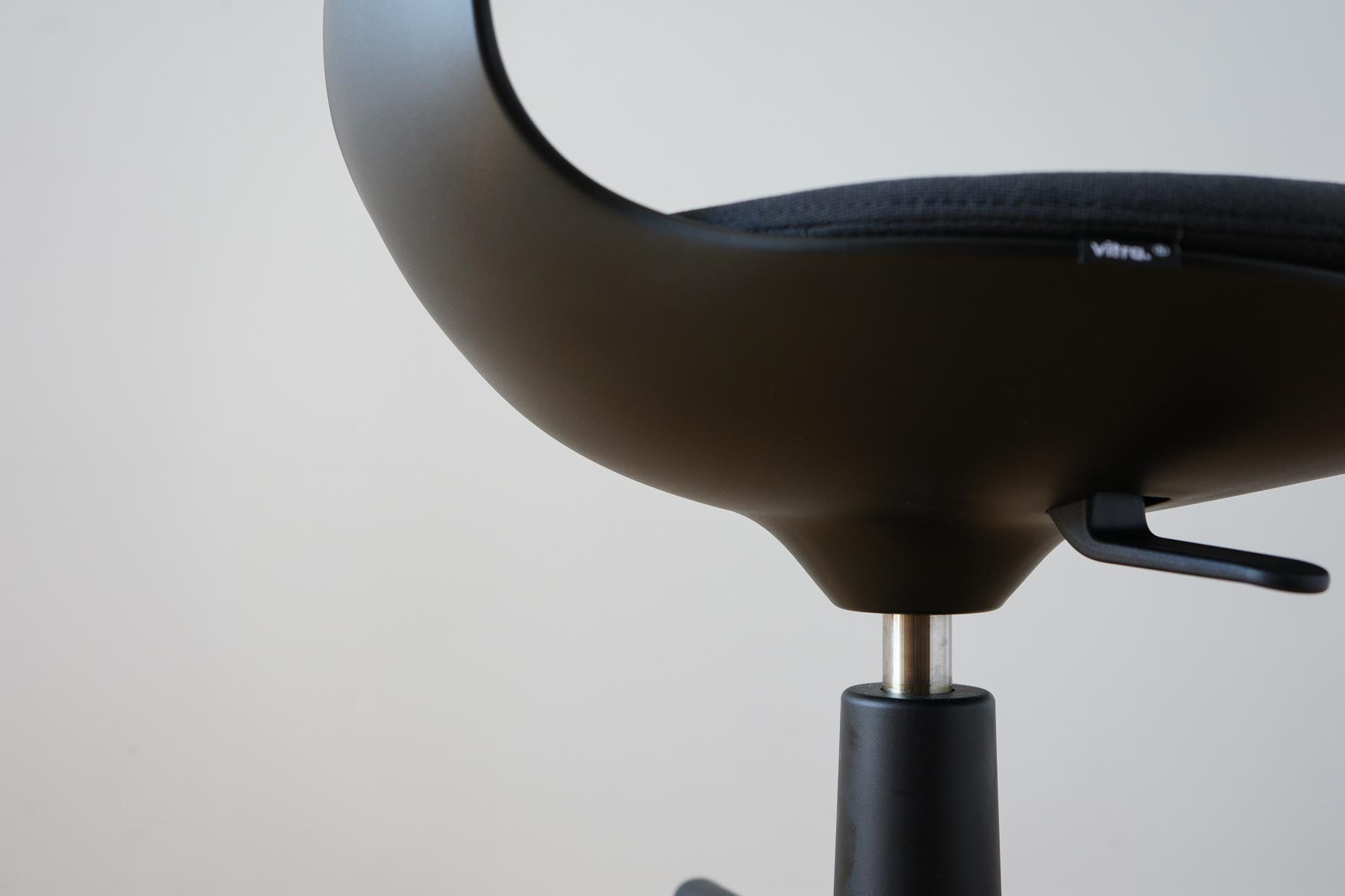 vitraルーキーの機能は極めてシンプル。背もたれの昇降と座面の昇降の2つの昇降機能が備わっています。複雑なレバーやボタン操作などのギミックはなく、見た目通りその機能もシンプルです。シンプルイズベストの言葉が似合うミニマルチェアです。