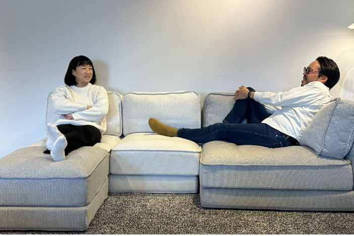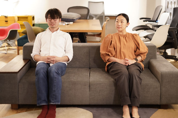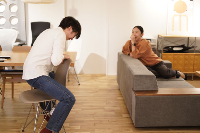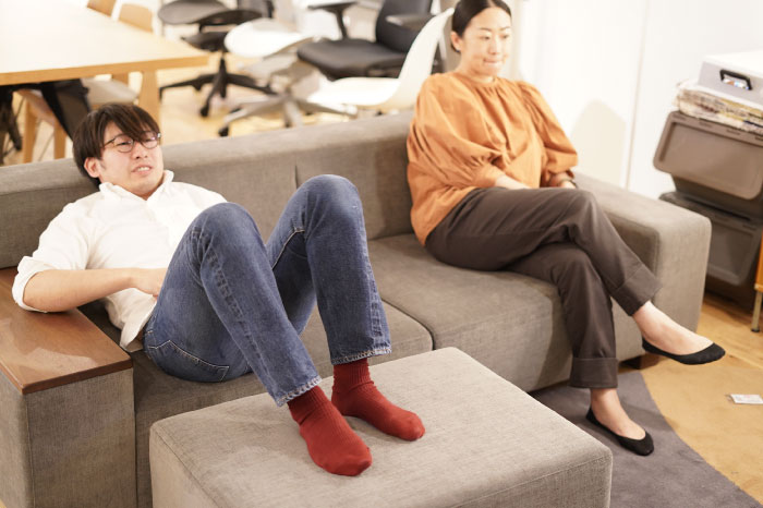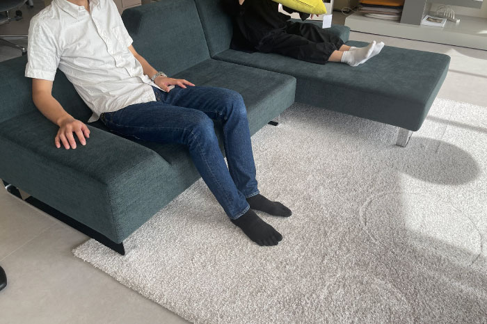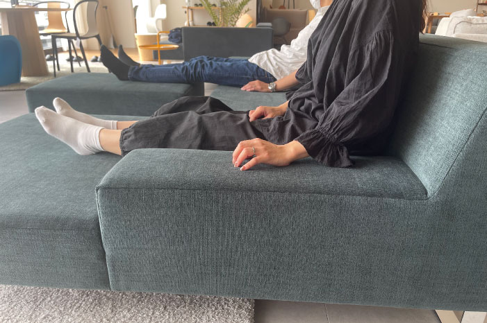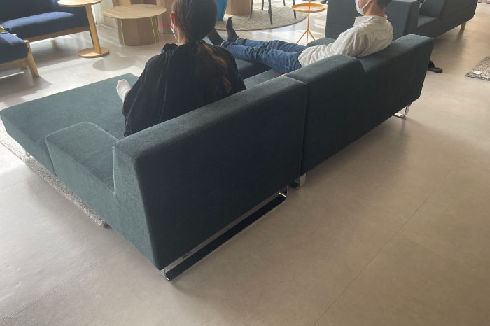 抜けのある開放的なソファ。様々な姿勢で座ることが可能です。