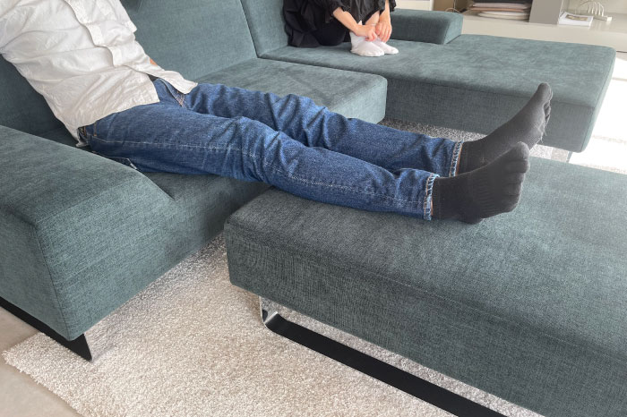 専用オットマンをプラスすれば、広々と足を延ばすことができ、自分だけの特別なリラックス空間が作れます。
