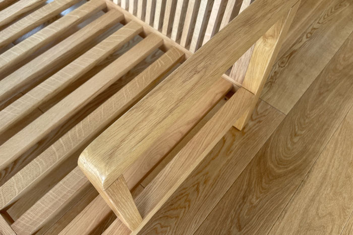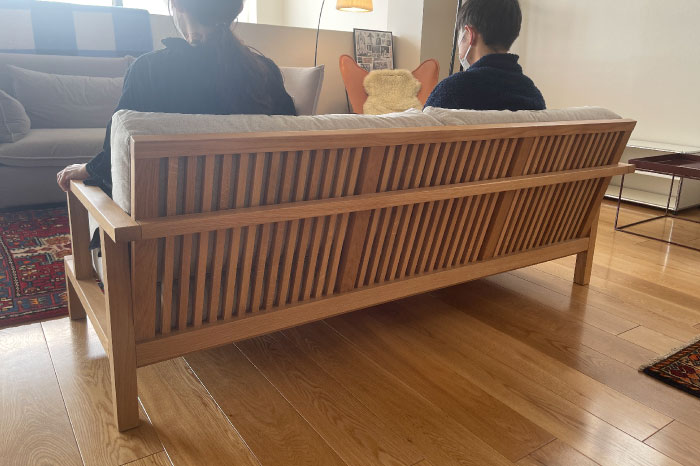 大人二人が腰掛けても十分なゆとりが取れ、硬めの座、柔らかな背で、長時間心地良く座ることができます。