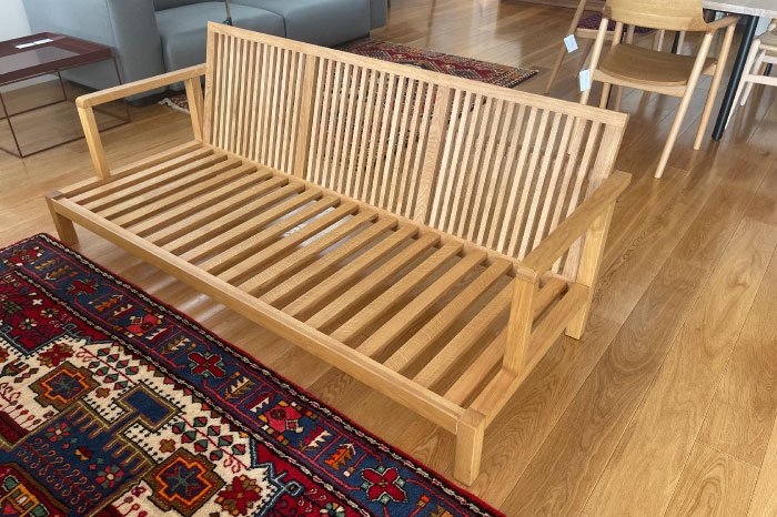 木フレームの美しさを最大限表現するため、バネは一切使用せず、クッション材のみで心地よく設計。