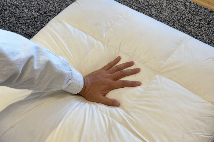 またフェザーは型崩れしないよう、部屋分けされたキルティング加工も施され、常に快適な心地を与えてくれます。
