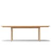CH006には、来客に応じて大きさを変えられる、伸長板が天板の両端に装備されています。素材は無垢のビーチ材又はオーク材からお選びいただけます(現在ご覧のページはビーチ材です)。ウェグナーのどのダイニングチェアを選ぶか、椅子のスタイル次第で様々な演出ができるテーブルです。