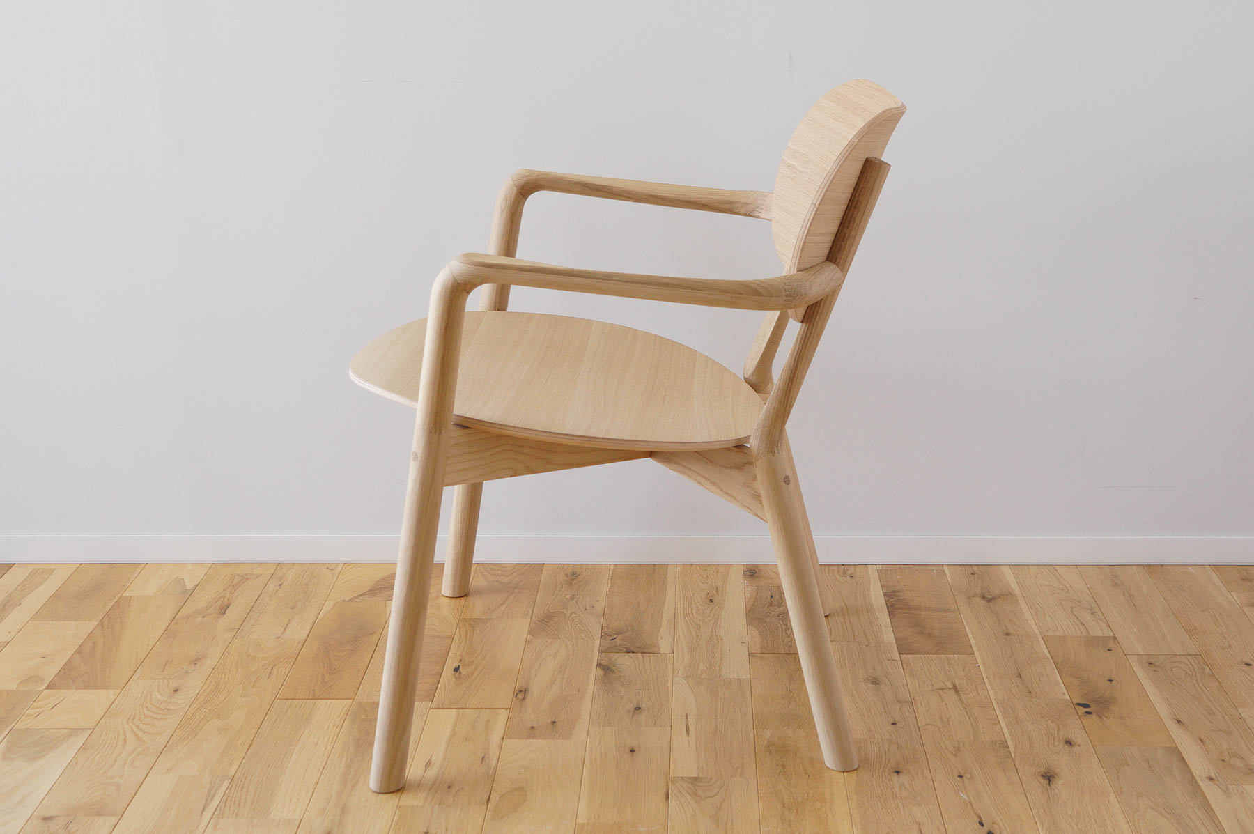 座ってアームをひと撫でするひととき。小さな素材からたくさんの木の温もりを感じることができるのがキャストールローチェアです。
