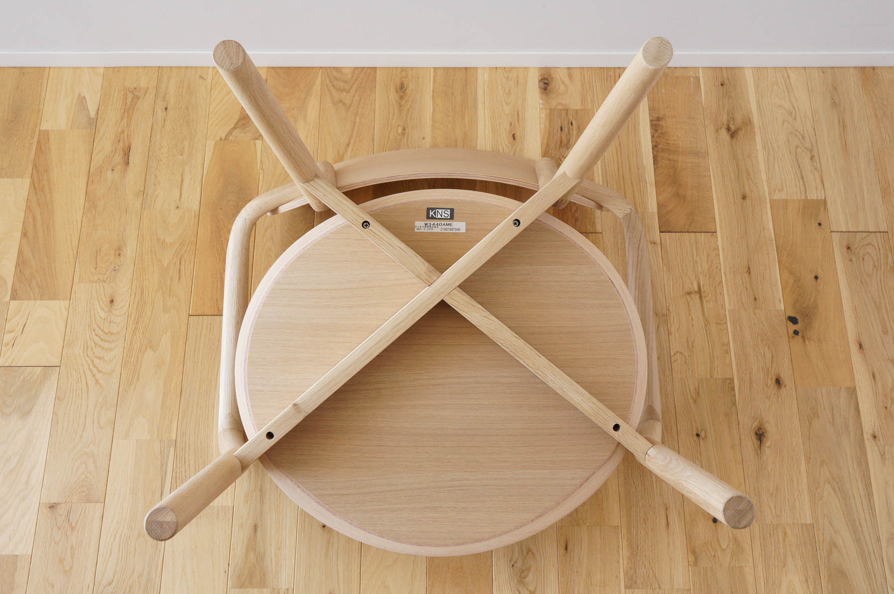 小さな国産材という素材からアプローチが始まるKNS。その小さな素材の良さを存分に味わうならやっぱり椅子を選びたい。鉄パイプを曲げてねじったような細身のフレームと低い座面は、まるで里山にしっかりと根付いた小径木の生き様のようです。