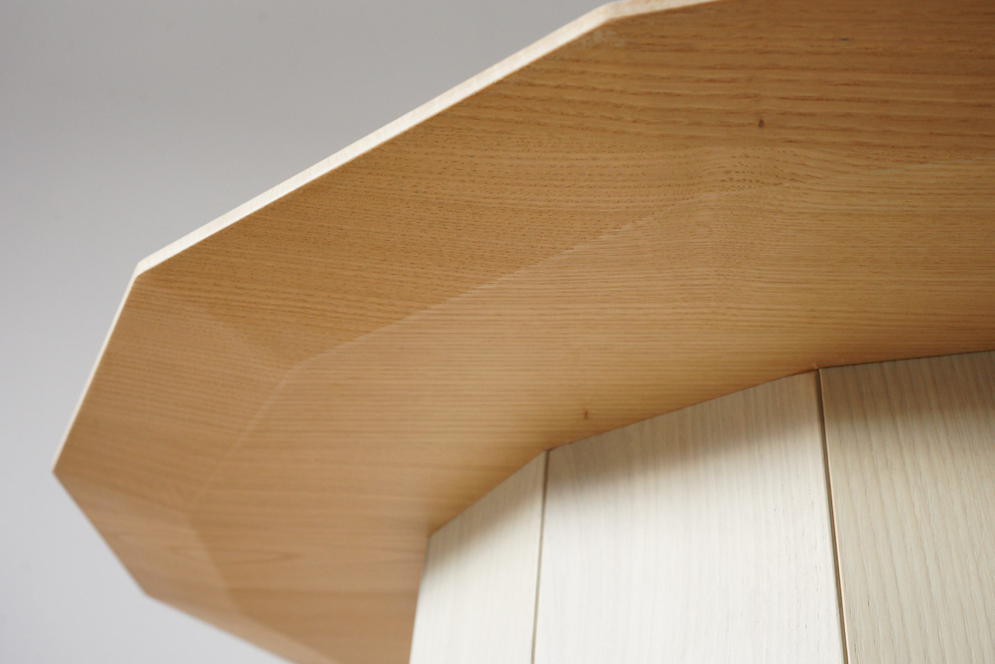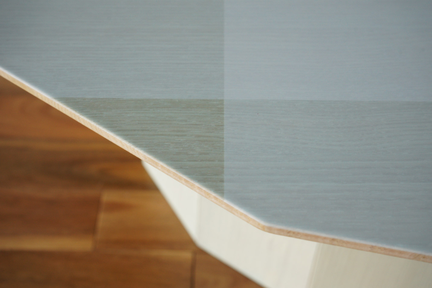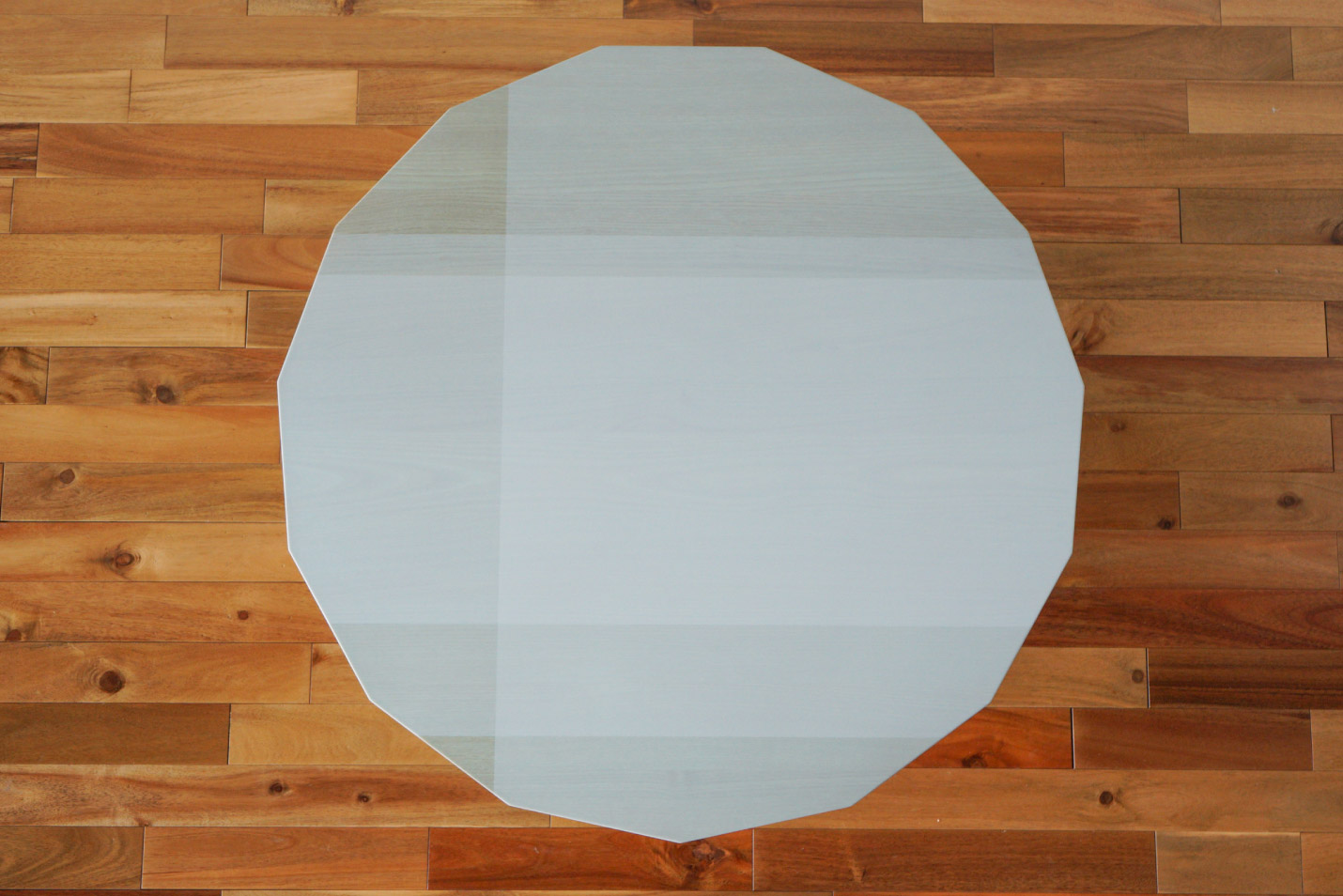 プロダクトの現場では多角形を作る際は奇数を避けるのがセオリーですが、どうしても15角のテーブルを作りたいというデザイナーに応えるべく、カリモクの木加工技術をこれでもかと詰め込んだのがカラーウッド リビングテーブルのシリーズです。