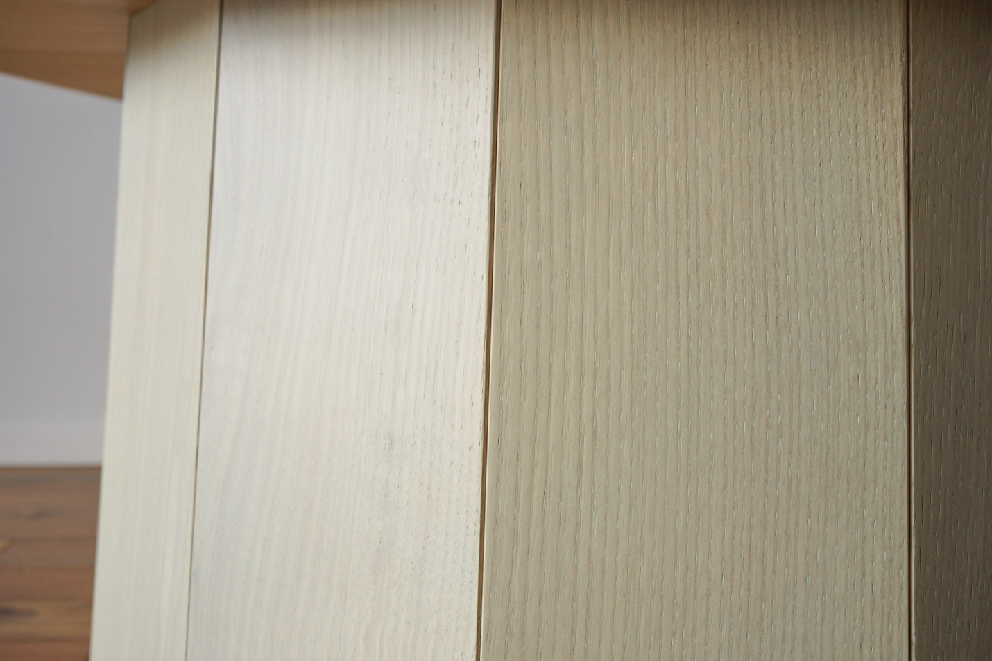 カラーウッドテーブルのシリーズでは「リアルコート」と呼ばれる、木工技術・グラフィック塗装技術・伝統的な家具塗装技術の3つの技術が融合して生まれた、カリモク独自の新たな塗装技術が施されています。