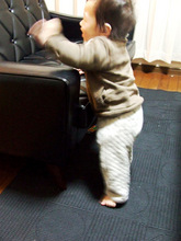 変化球としてふと気付けばクッションの上にのぼってしまっていることもあるので、ますます目を離せなくなりました。。。(奥行きがあるので、のぼってからまたさらに背もたれにつかまり立ちしようとします)