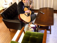夜や休日には、旦那の趣味であるサックスやギターをプレイする場所として利用しています。どちらの楽器をプレイするにもちょうどよい高さのようで、ロビーチェアを一人占めして有意義に楽しんでいるようです(私と子供は仕方なく床に座っているのですが...)。