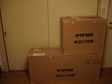 連絡から数日後。ついに届きました、Kチェア2シート! ということで今回は包装用ダンボールを撮影してみました。比較対象として、以前購入していたKチェア1シートのダンボールを上に乗せてみました。Kチェア2シートは見た目が大きいものの、男一人で持ち上げられる重さでした。