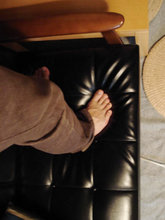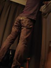 VANILLAの方によると、Kチェアは60kgのおもりを6万回落下させた耐久試験にクリアしているそうです。そこで、不肖ユタカ(体重、約60kg)が耐久性を確認してみました。