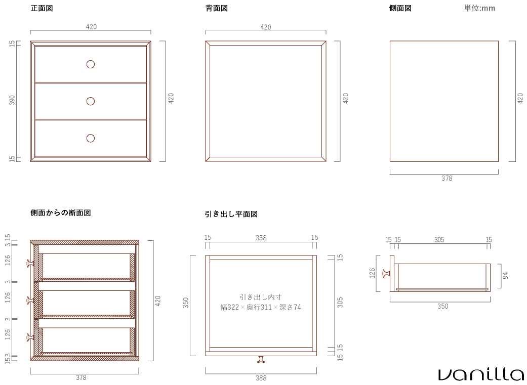 ※引き出し間の隙間には個体差がある場合がございますが、木製のスライドによる誤差となります。