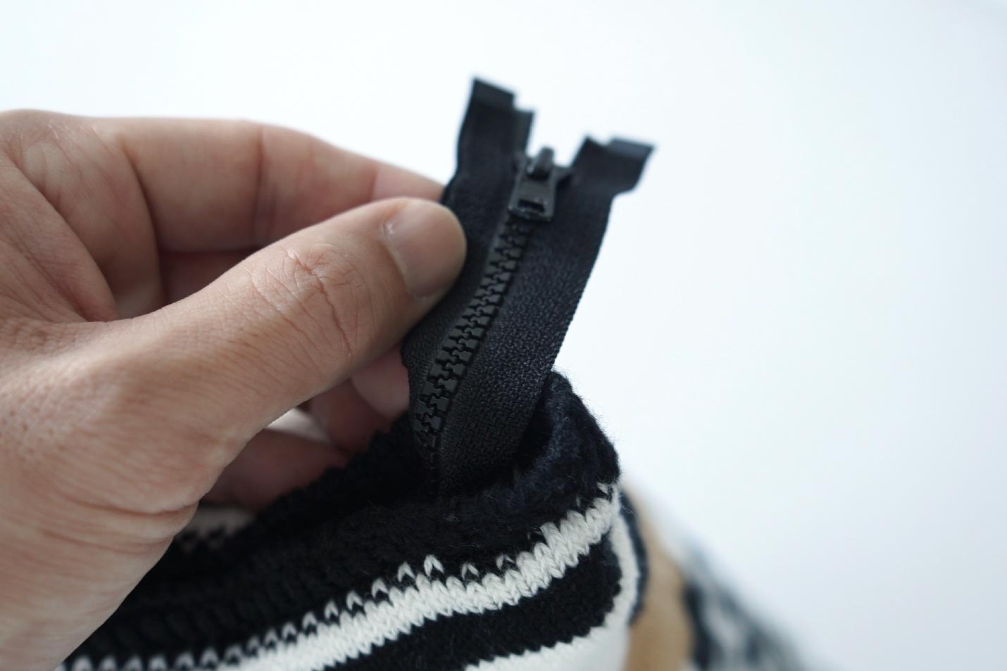 カリモクニュースタンダード ストライプスクッションS カバーのチャック部分