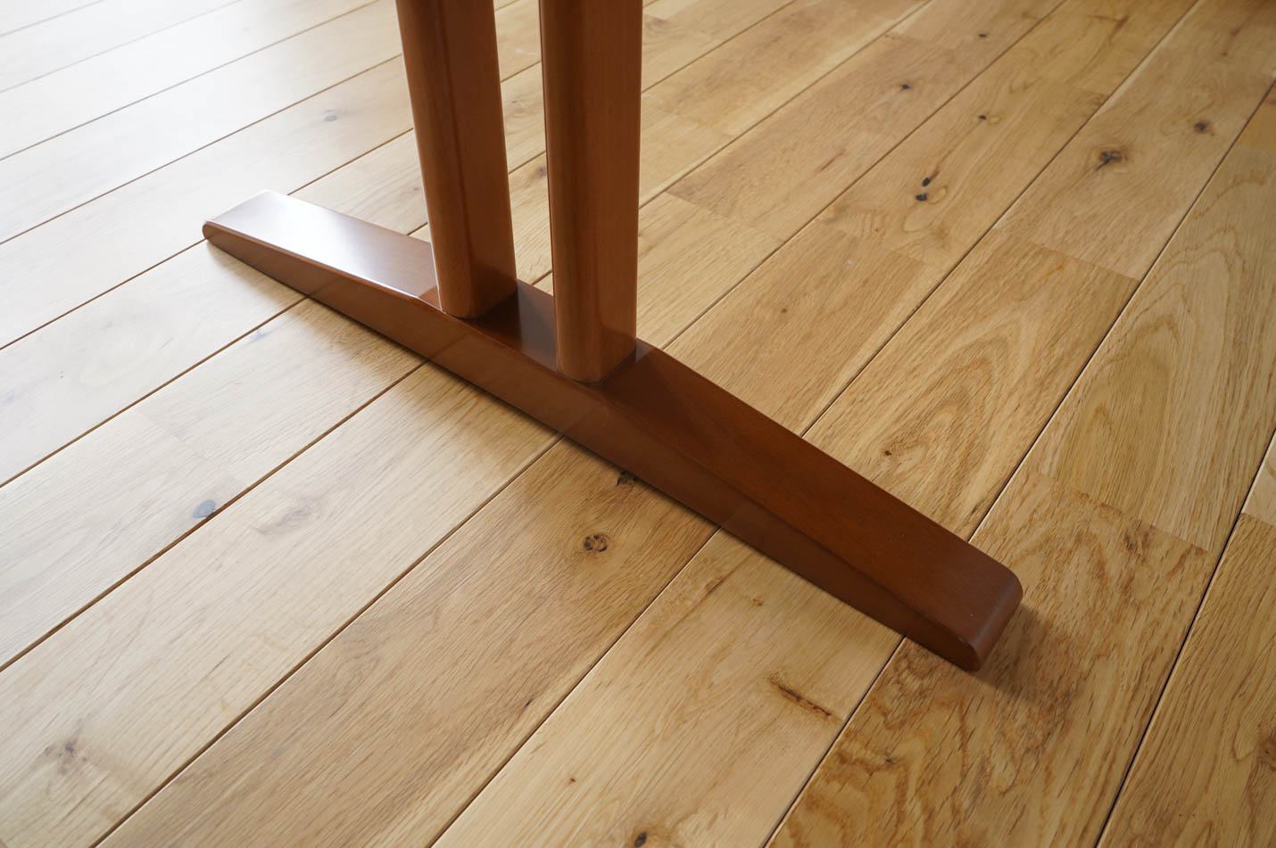 さらにカフェテーブルの脚はT字の2本脚になっているので出入りするときにも邪魔になることはありません。